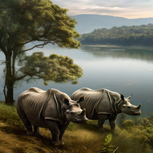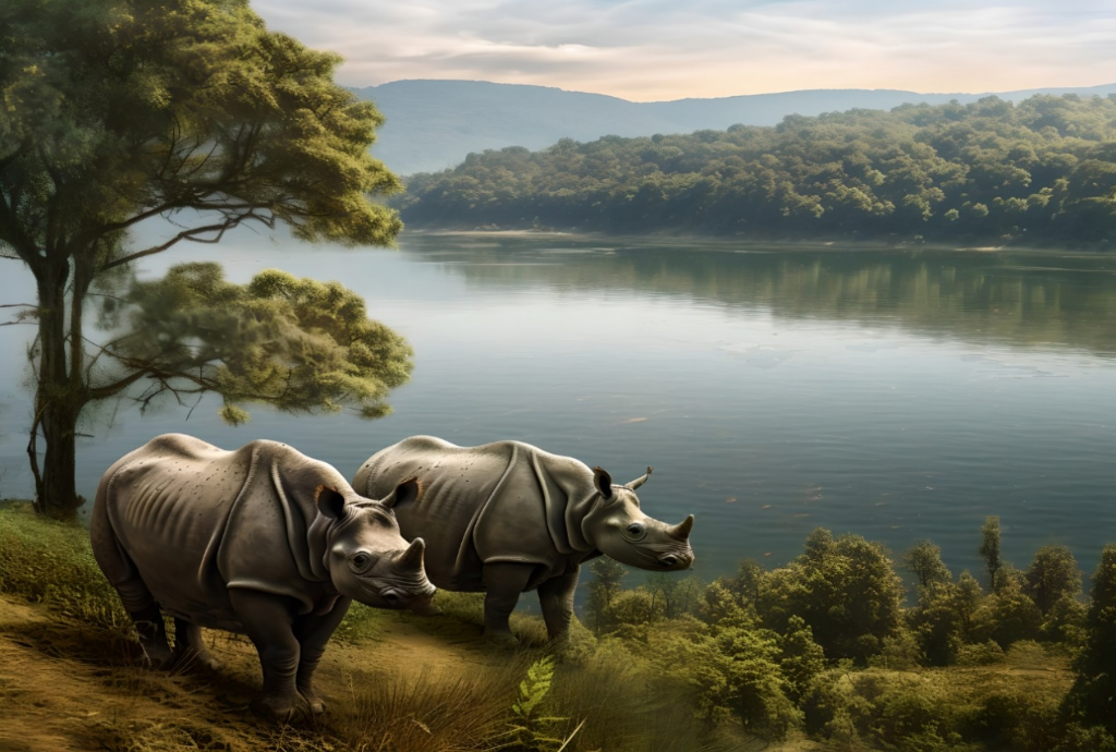 寧夏同心地區中新世中期葉氏翹鼻角犀生態復原圖。(中國科學院古脊椎所供圖)
