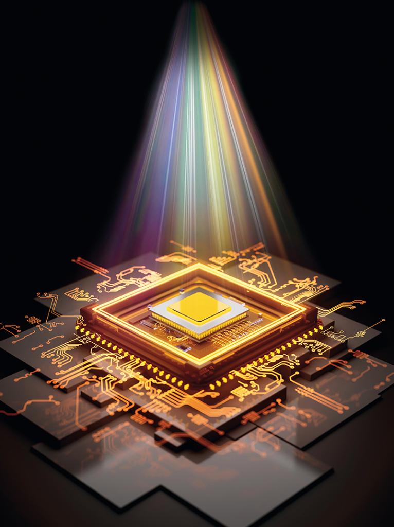 全模擬光電智能計算芯片效果圖。經長期聯合攻關,清華大學研究團隊突破傳統芯片的物理瓶頸,創造性提出光電融合的全新計算框架,并研制出國際首個全模擬光電智能計算芯片(簡稱ACCEL) 新華社圖