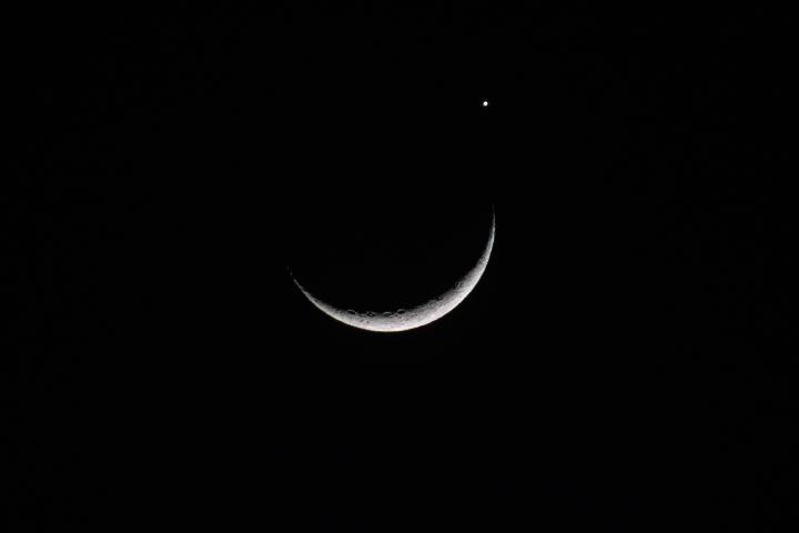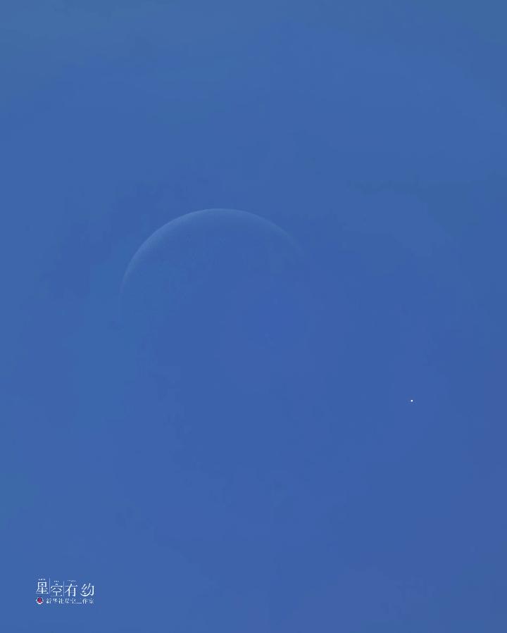 由于金星總在太陽附近徘徊,所以月球與之相伴時,月相要么是農歷月初的蛾眉月,窄窄的;要么是農歷月末的殘月,細細的。