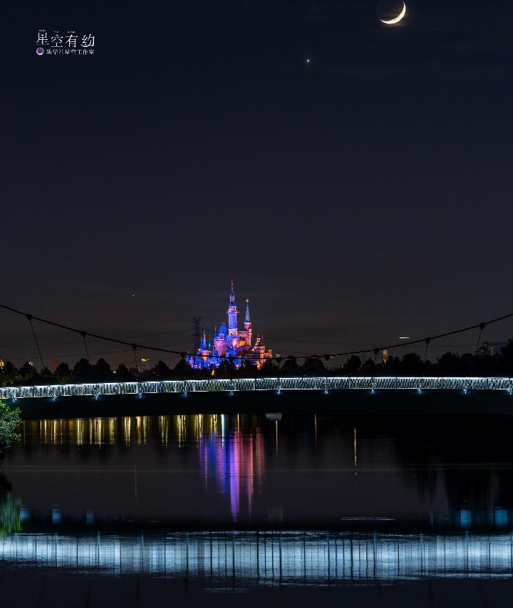 上海星空攝影愛好者陳悅華2023年5月23日在上海浦東拍攝的金星伴月。(本人供圖)