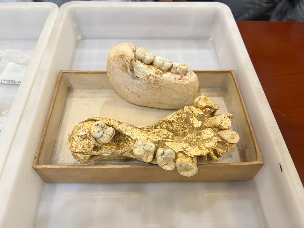 步氏巨猿巨大的下頜化石。新華社記者溫競華 攝