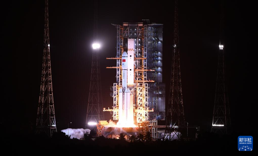 1月17日22時27分,搭載天舟七號貨運飛船的長征七號遙八運載火箭,在我國文昌航天發射場點火發射。約10分鐘后,飛船與火箭成功分離并進入預定軌道,之后飛船太陽能帆板順利展開,發射取得圓滿成功。新華社記者 張麗蕓 攝