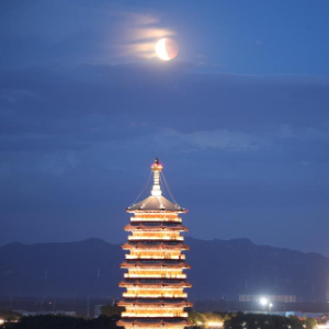 北京星空攝影愛好者周博2021年5月26日在北京市懷柔區雁棲湖拍攝的月偏食。(本人供圖)