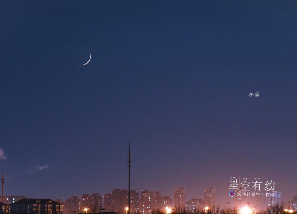 2022年1月7日水星東大距,這是楊婧在東大距前夕的1月4日傍晚在天津市東麗區拍攝到的水星與蛾眉月。(本人供圖)