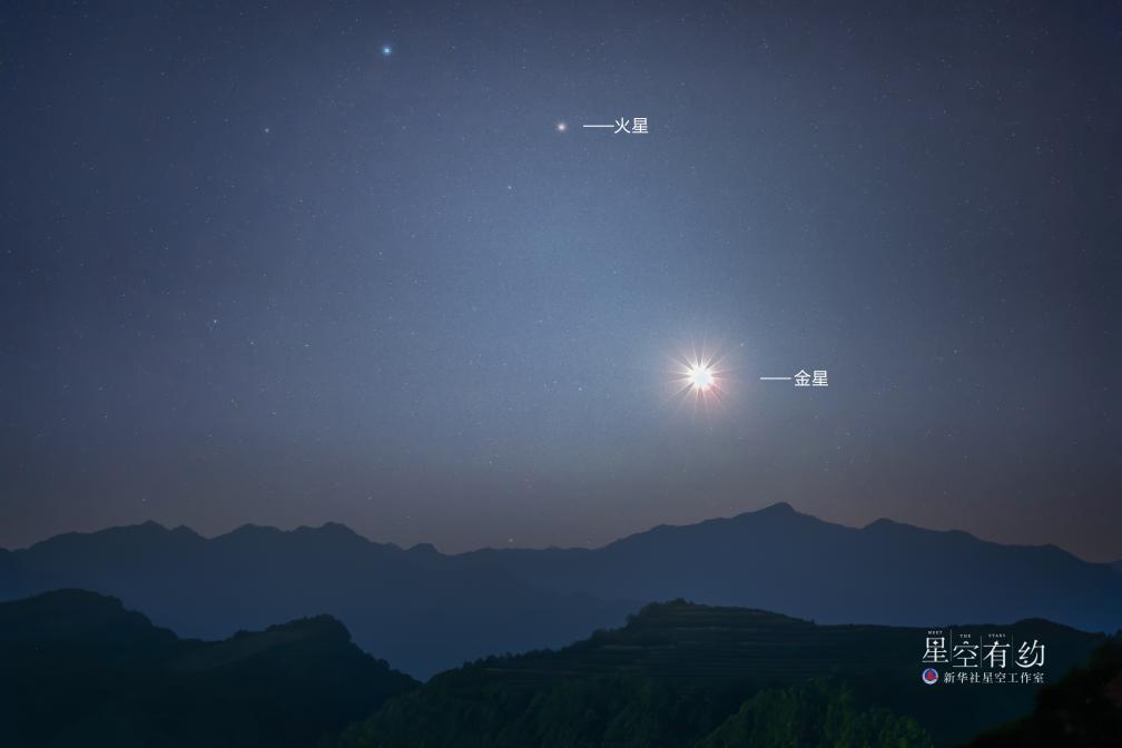 甘肅省星空攝影愛好者魯罡2023年7月6日在甘肅省隴南市兩當縣拍攝的金星和火星。(本人供圖)