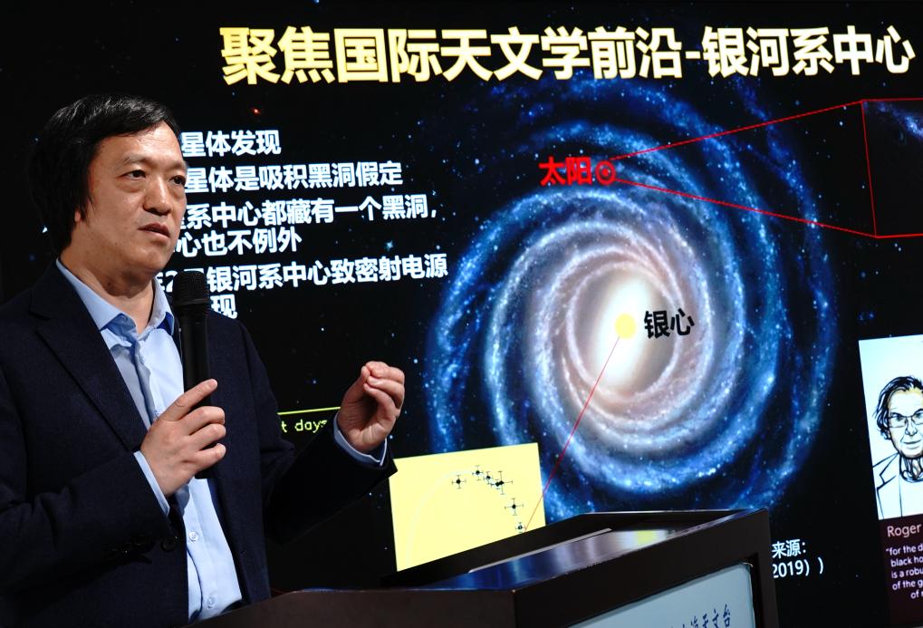 中國科學院上海天文臺臺長沈志強介紹銀河系中心黑洞。新華社記者 張建松 攝