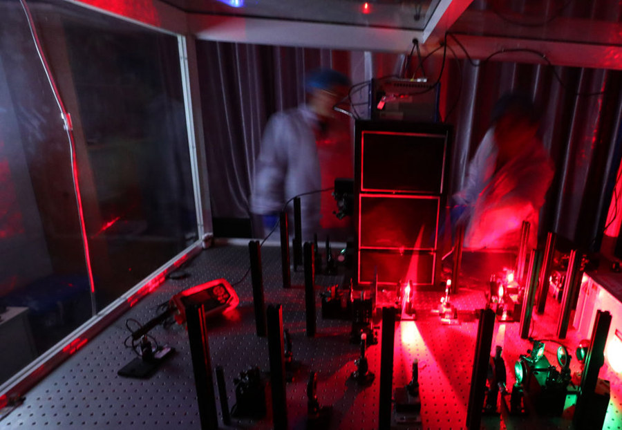 趙苗博士在上海光機所光學實驗室調試實驗設備(2月29日攝)。