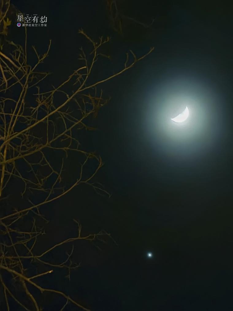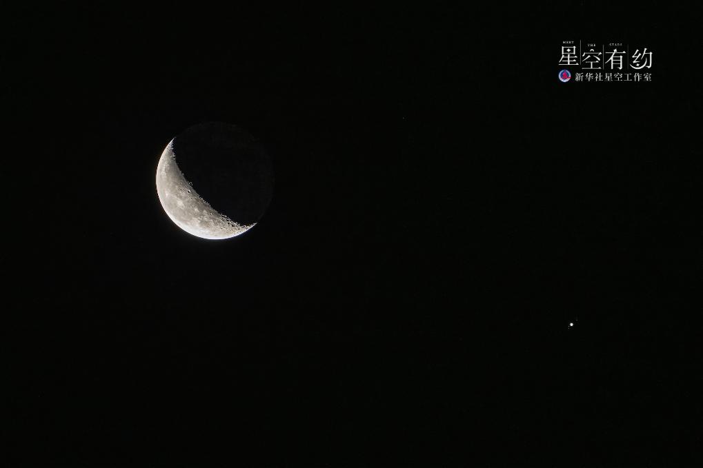 “3月14日為農歷二月初五,月相為蛾眉月,木星會在這輪彎彎的月牙下偏左的位置,二者的角距離在7度左右?!睏铈赫f。