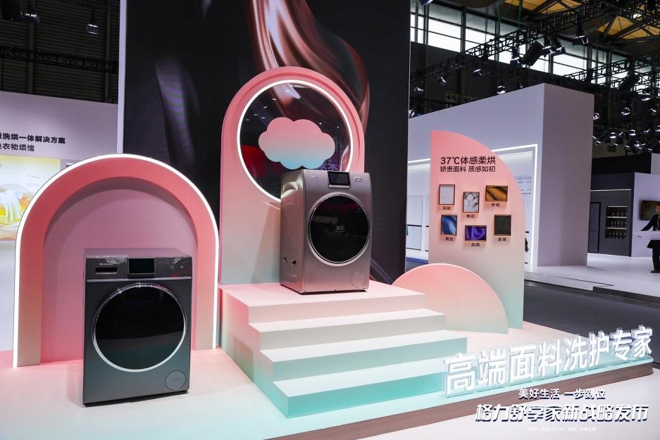 在智慧洗護展區,格力如新二代熱泵洗護機向參展觀眾展示了高端衣物的“洗護去皺魔法”。洗護機的37℃體感柔烘功能可以減少纖維收縮變形,還原柔軟、蓬松質感;全域超微蒸汽洗2.0功能可以做到免水洗護理織物;I-Cleaner全域智潔2.0功能可以智算檢測線毛絮覆蓋,活水強效凈洗過濾網和換熱器,保持桶內清潔;GRS速烘科技可以實時調控壓縮機運行狀態,保證全時高效烘干,展現格力智慧洗護魅力。