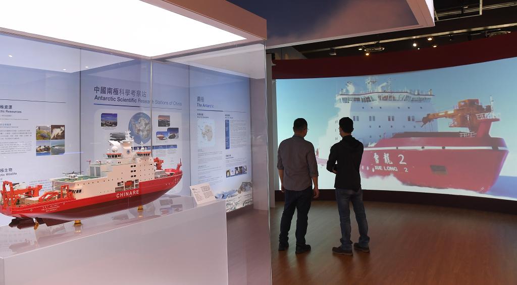 2024年3月19日,觀眾在香港科學館“極地科研與氣候變化”展上參觀。新華社記者陳鐸攝