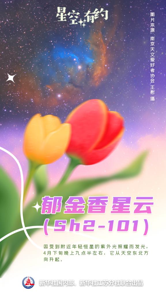 新華社南京4月26日電(記者王玨玢、邱冰清)絢爛春光里,賞花正當時。你知道嗎?春季不僅地球上百花盛開,夜空“花園”里也“綻放”著不少以花、葉、蝶命名的絢麗星云,一起來看看吧!