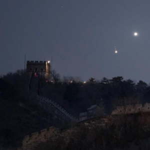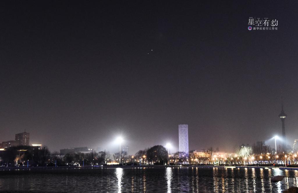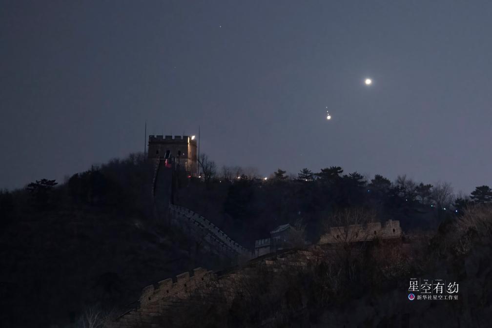 這是2023年3月2日在北京懷柔區水長城拍攝的金(右上)木(左下)極近。(北京星空攝影愛好者周博 攝)