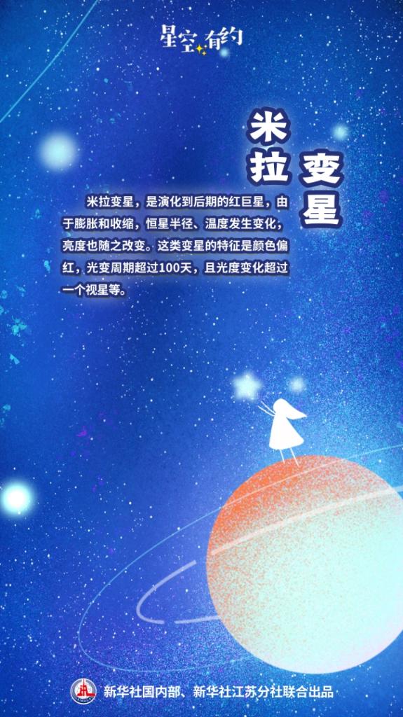 “脈動變星又分為很多類型,如造父變星、米拉變星等?!蓖蹩瞥f,仙后座R星所屬的米拉變星,是演化到后期的紅巨星,由于膨脹和收縮,恒星半徑、溫度發生變化,亮度也隨之改變。這類變星的特征是顏色偏紅,光變周期通常超過100天,且光度變化超過一個視星等。