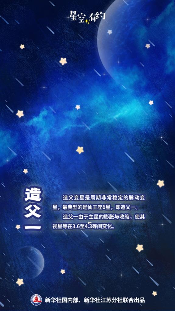 造父變星是周期非常穩定的脈動變星,最典型的是仙王座δ星,即造父一。造父一是由兩顆恒星組成的雙星系統,由于主星的膨脹與收縮,使其視星等在3.6至4.3等間變化。它的光變周期是5天8小時47分,像鐘表般準確。