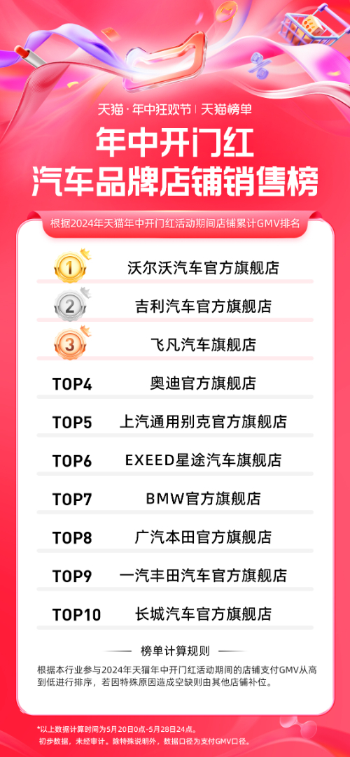 天貓618第一波汽車品牌店鋪排行榜pagebreak