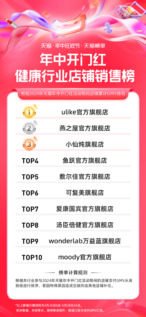 天貓618第一波健康行業店鋪排行榜pagebreak
