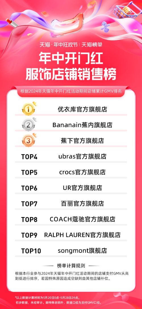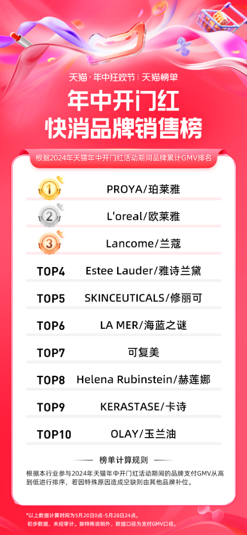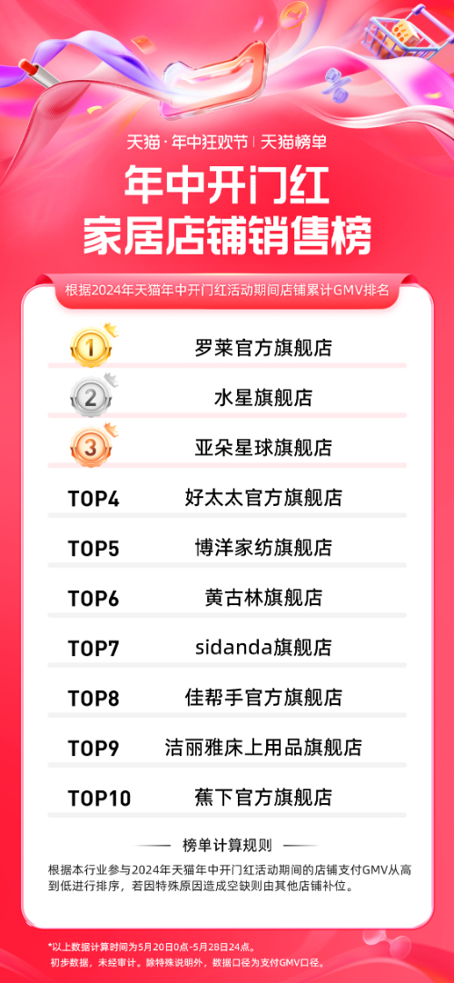 5月30日,天貓618第一階段(5.20-5.28)品牌成交排行榜發布,快消、服飾、運動戶外、家享生活、3C數碼、玩具潮玩、健康、香氛香薰、寵物、食品、生鮮、汽車、文教、珠寶飾品等行業的領跑品牌、商家出爐。