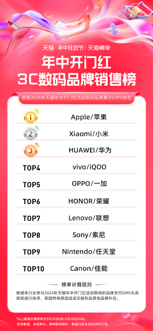 天貓618第一波3C數碼品牌排行榜pagebreak
