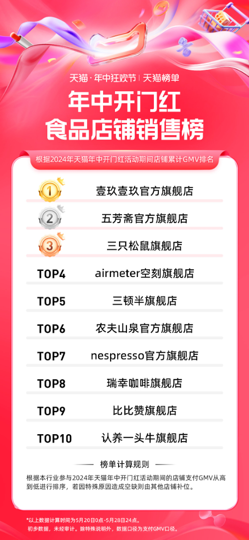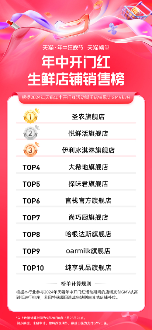 天貓618第一波生鮮行業店鋪排行榜pagebreak