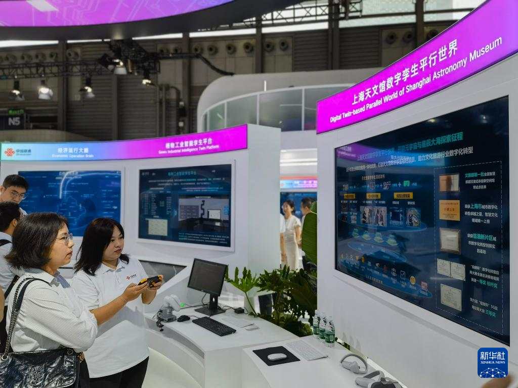 6月26日,觀眾在中國聯通展臺體驗“上海天文館數字孿生平行世界”。