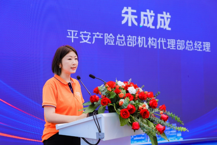 平安產險總部機構代理部總經理朱成成發表演講