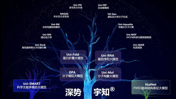 深勢科技聯合創始人、CEO孫偉杰介紹,近年來,深勢科技與協作者們推出了DPA分子模擬大模型、Uni-Mol分子構象大模型、Uni-Fold蛋白折疊大模型、Uni-RNA基因序列大模型、Uni-Dock高性能分子對接引擎,以及Uni-SMART科學文獻多模態大模型等一系列科學大模型及底層引擎。