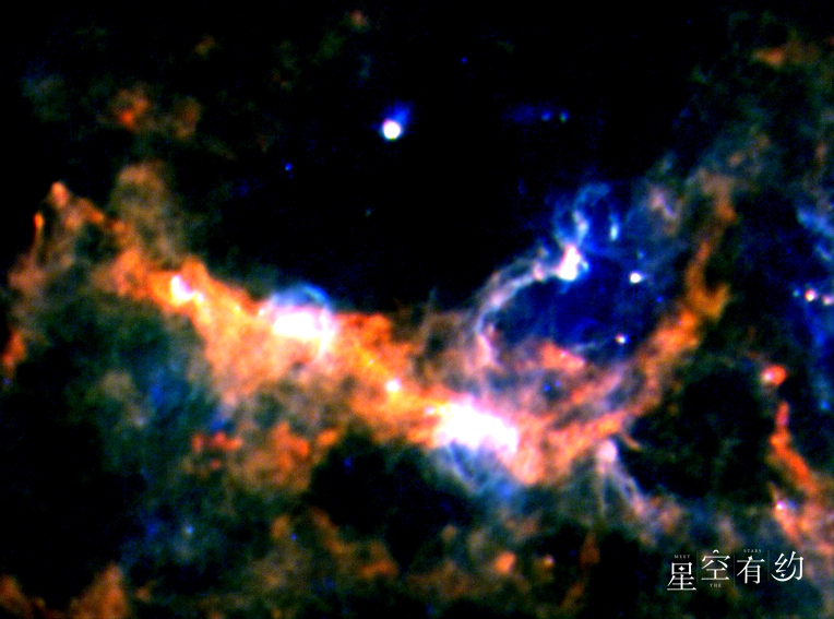 團隊觀測發現,在這兩個巨分子云中的部分致密區域已有活躍的大質量恒星形成活動,且分子云與恒星的形成過程幾乎同時進行?!啊恰c‘云’幾乎同時誕生,這種快速的恒星形成的圖景增進了天文學家對恒星形成的理解?!蓖蹩普f。