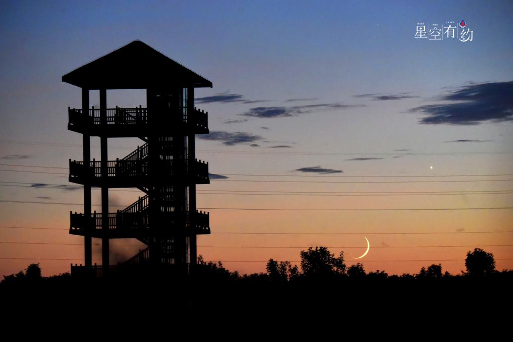 這是2024年9月5日在北京豐臺拍攝的農歷初三蛾眉月。(星空攝影師王俊峰 攝)