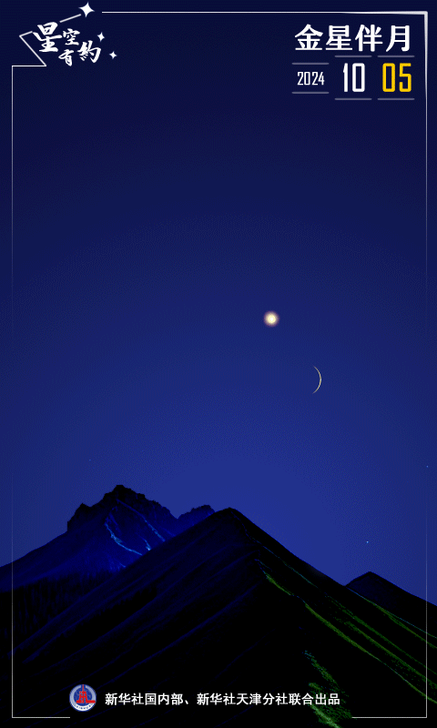 新華社天津10月4日電(記者周潤?。?0月5日和6日傍晚,我國公眾將有機會目睹明亮的金星與蛾眉月相伴的一幕“星月童話”。屆時只要天氣晴好,在西南方低空,星光與月光交織在一起,映美蒼穹,成為天邊一道亮麗的風景線。