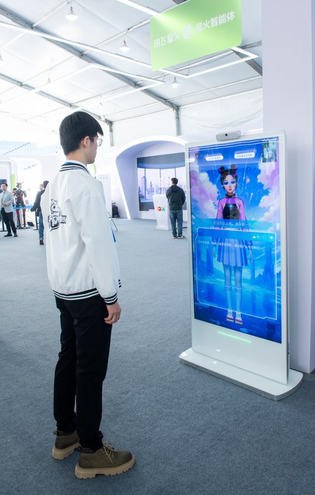 在第七屆世界聲博會上,虛擬人智能交互機在和觀眾互動交流。新華社記者 傅天 攝