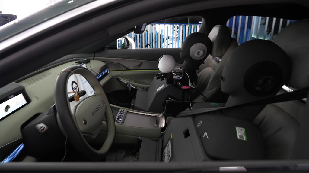 在展區中的一輛新能源汽車內部,一臺機器人正在模擬乘客與汽車進行語音交互,汽車外的一塊大屏幕上,實時分析顯示語音交互效果的準確性、穩定性和及時性,并最終自動生成報告。這款智能座艙人機交互效果評測機器人首次亮相,便吸睛無數。