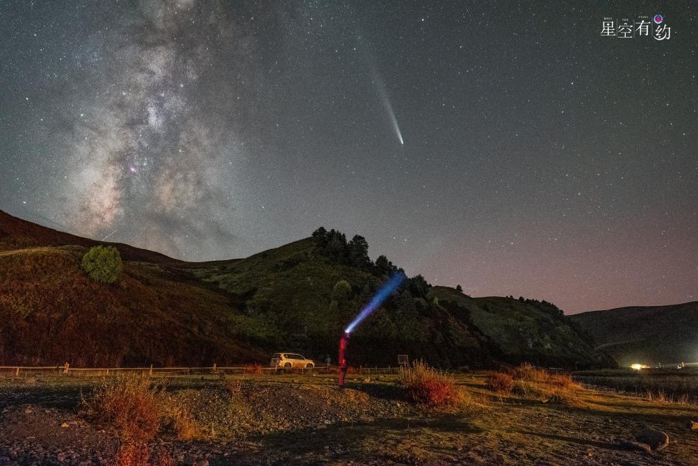 10月22日在四川康定塔公草原拍攝的紫金山-阿特拉斯彗星。(王藝胤攝,星聯CSVA供圖)