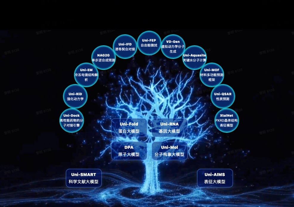 順承著“四梁N柱”的平臺架構以及多年來積累的堅實底層技術能力,今年4月,深勢科技發布了“深勢·宇知”大模型體系,其中最核心部分就是面向微觀世界的獨特模態打造的一系列AI for Science大模型;以及面向科學文獻的處理,打造的Uni-SMART大模型,面向實驗表征信號的增強以及反演的增強,打造的表征相關的工作等。目前,這些大模型正在開枝散葉,進一步演化為下游工業場景中每個人觸手可得的產品。