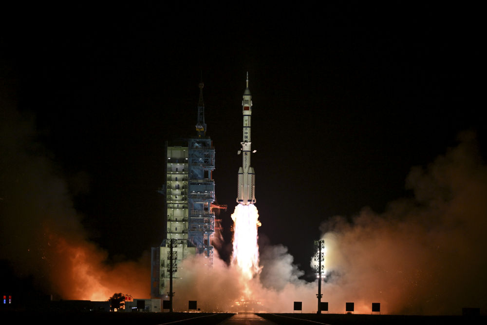 2024年10月30日,搭載神舟十九號載人飛船的長征二號F遙十九運載火箭在酒泉衛星發射中心點火發射。新華社記者 李鑫 攝