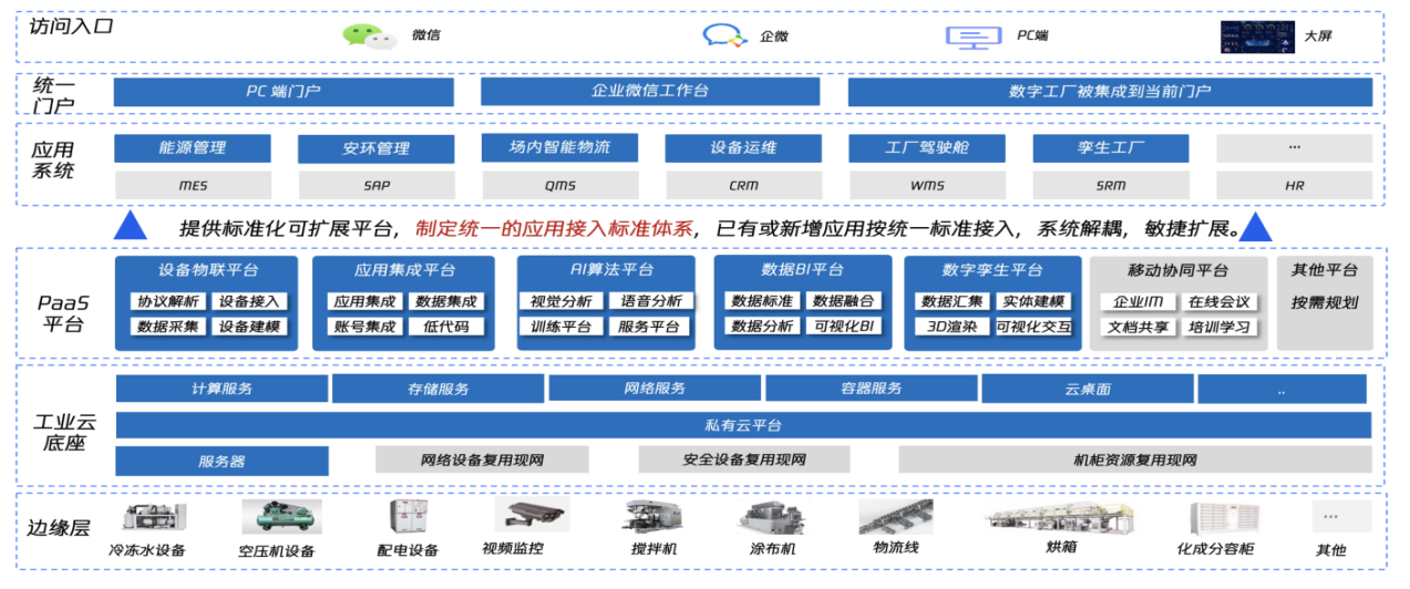 圖為基于騰訊云工業互聯網平臺的數字工廠架構圖
