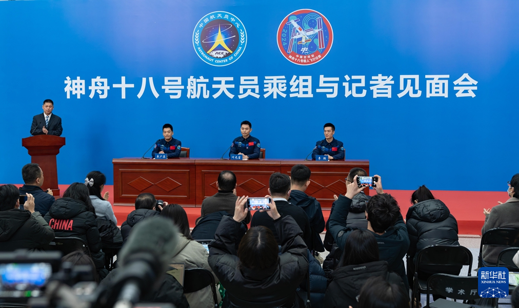 新華社北京1月8日電(劉藝、占康)中國航天員科研訓練中心8日下午在北京航天城舉行神舟十八號航天員乘組與記者見面會,葉光富、李聰、李廣蘇3名航天員從太空返回兩個多月后首次正式公開亮相。