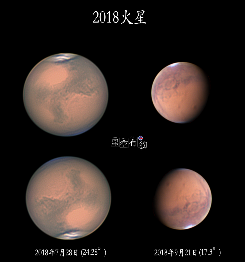 2018年7月和9月在廣東深圳羅湖拍攝的火星(拼版)。(黃永雄攝)