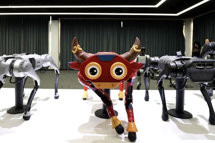 2025年2月10日,杭州云深處科技的工作人員在動態展示“絕影”系列機器人。新華社記者 黃宗治 攝