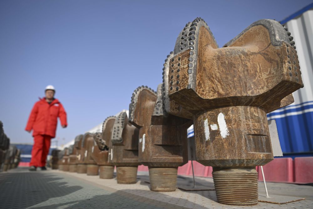 這是深地塔科1井施工時使用過的針對地下各種地層的國產金剛石鉆頭(2025年2月19日攝)。新華社記者 胡虎虎 攝