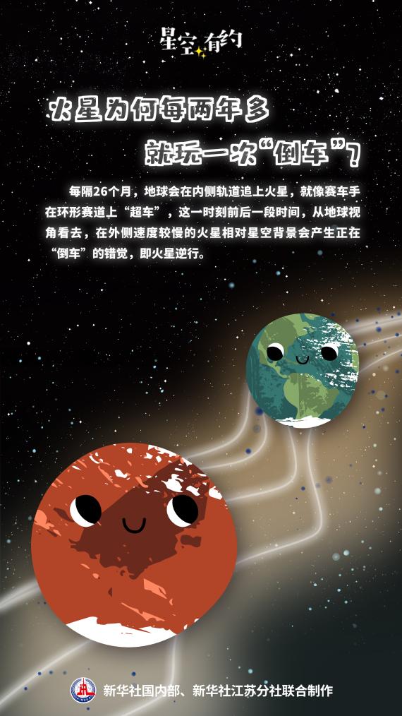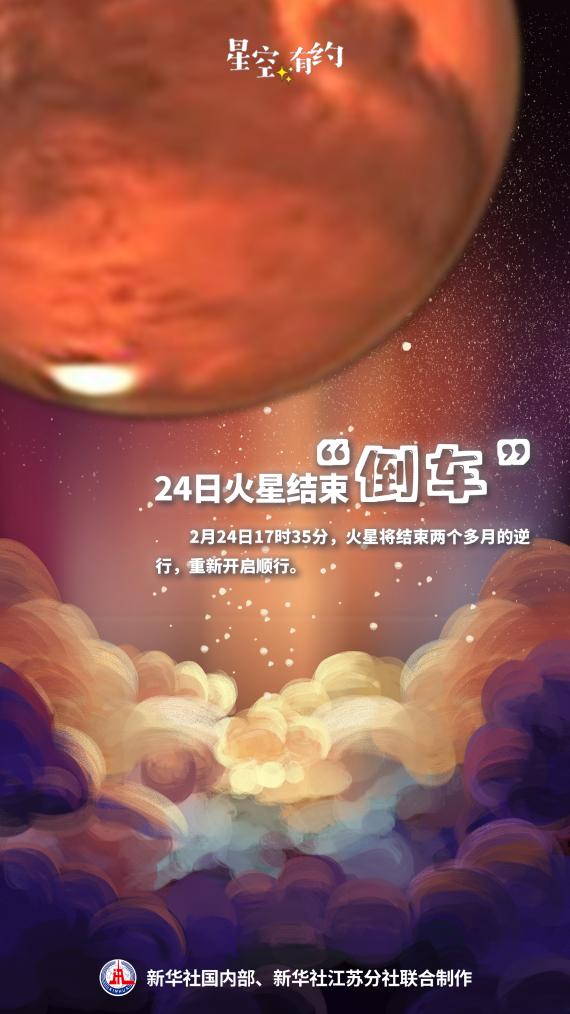 新華社南京2月22日電(記者王玨玢、朱筱)2月24日17時35分,火星將結束兩個多月的逆行,重新開啟順行,好比在太空中上演一場精彩的“漂移秀”,由“倒車模式”轉為“正向行駛”。