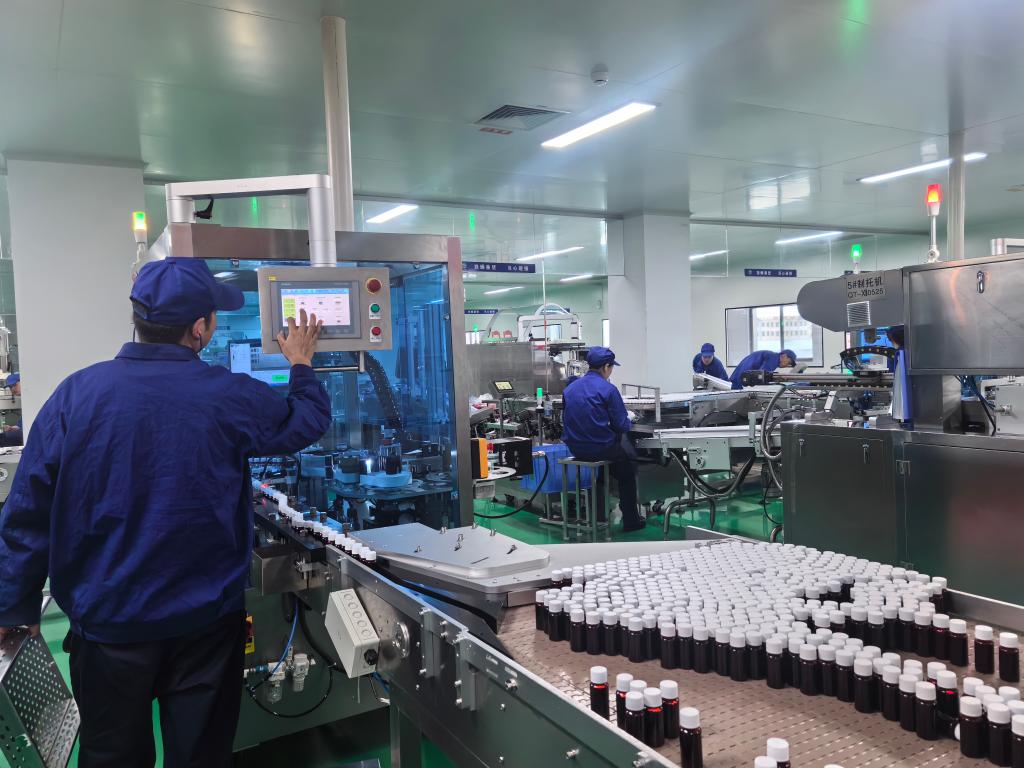 甘肅普安制藥股份有限公司企業員工正在生產線上檢查產品參數。新華社記者白麗萍 攝