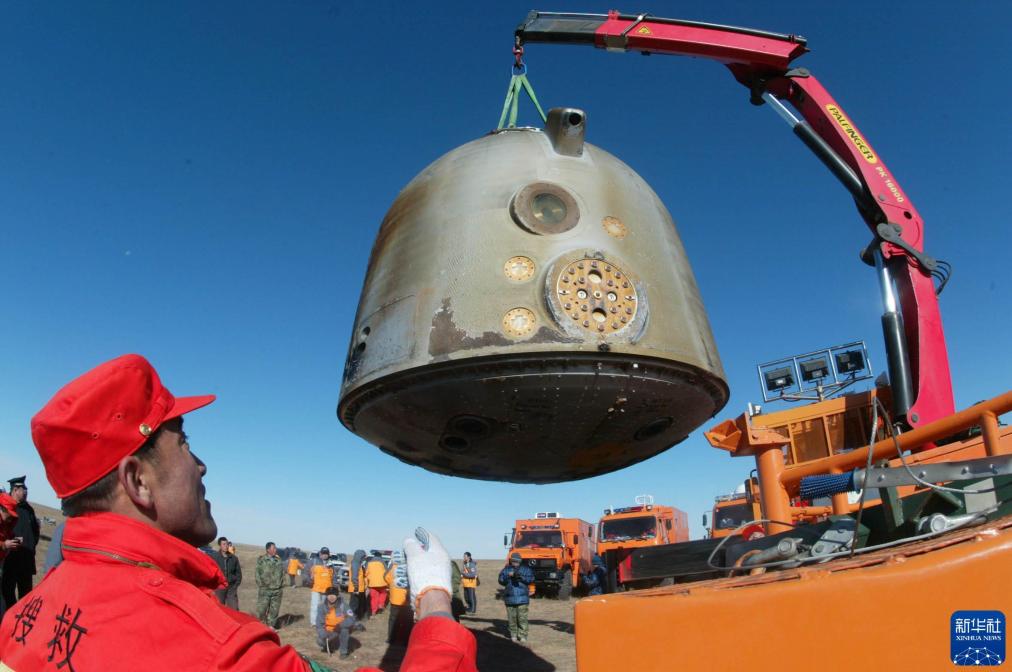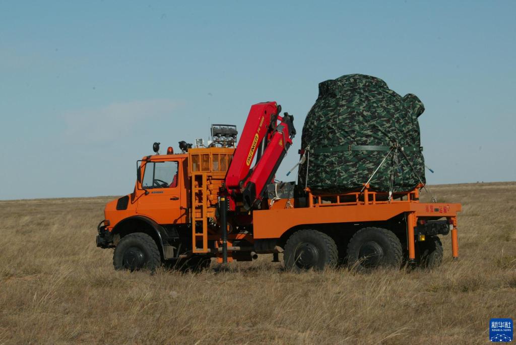2003年10月16日,神舟五號載人飛船返回艙被運離內蒙古主著陸場。