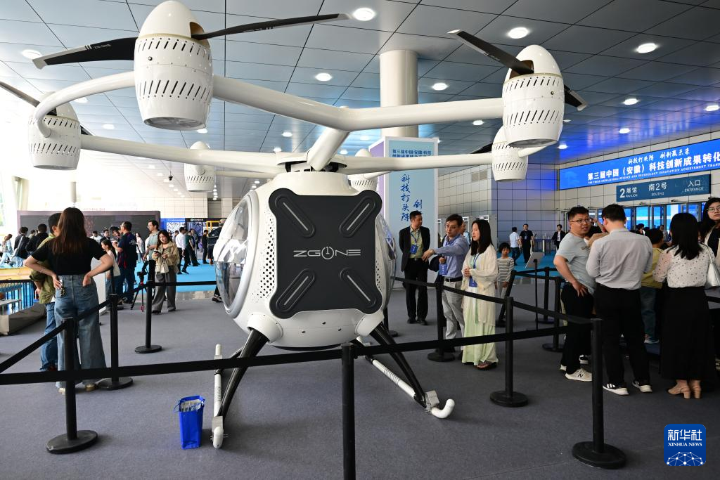 4月26日,觀眾在第三屆中國(安徽)科技創新成果轉化交易會上參觀一款飛行器。