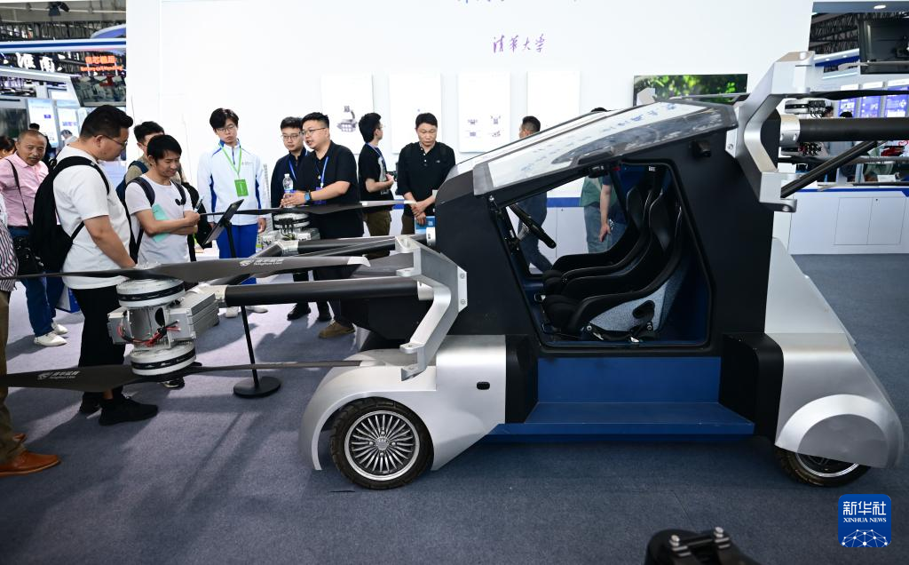 4月26日,觀眾在第三屆中國(安徽)科技創新成果轉化交易會上參觀一款飛行汽車。