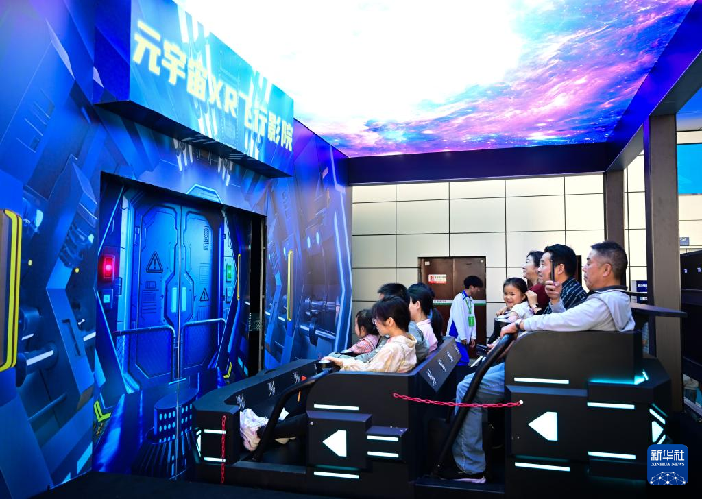 4月26日,觀眾在第三屆中國(安徽)科技創新成果轉化交易會上體驗元宇宙XR飛行影院。