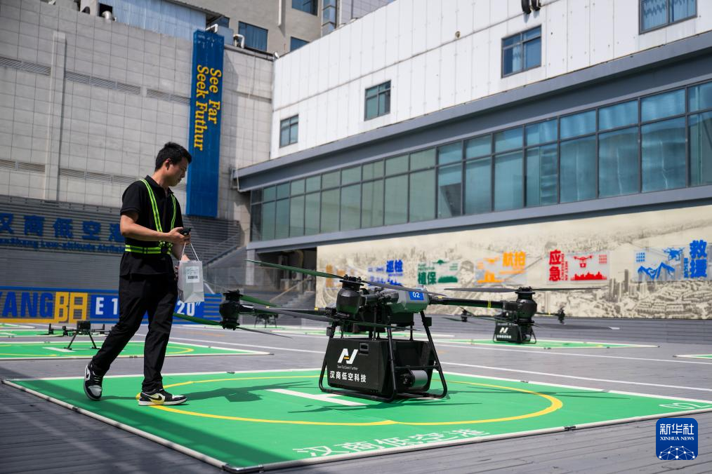 6月16日,幾架無人機從漢商低空港停機坪起飛。