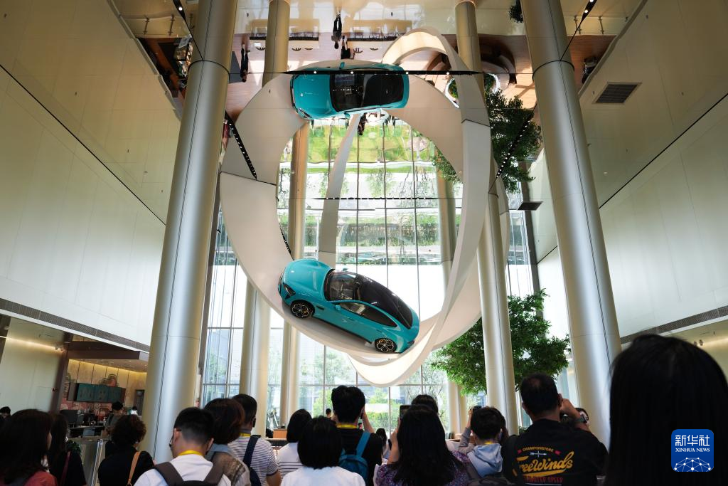 6月16日,參觀者在北京小米汽車工廠的科技展廳了解小米超級電機。