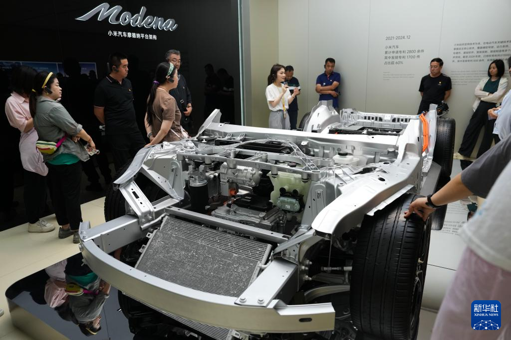 6月16日,參觀者在北京小米汽車工廠的科技展廳了解小米汽車摩德納平臺架構。