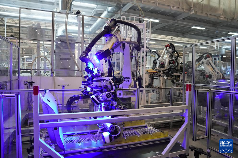 6月16日,機器人在北京小米汽車工廠車間流水線上工作。