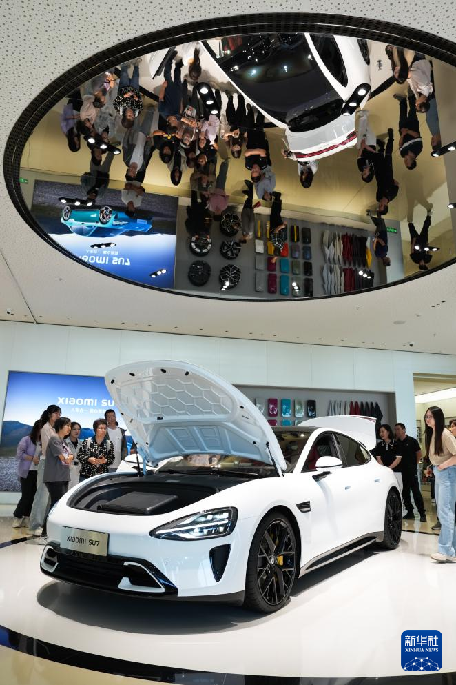 6月16日,參觀者在北京小米汽車工廠的體驗中心了解SU7汽車。